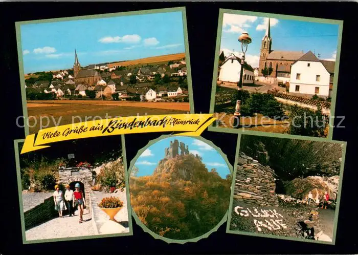 Bundenbach Ortsansicht mit Kirche Schiefergrube Ruine Schmidtburg Bundenbach