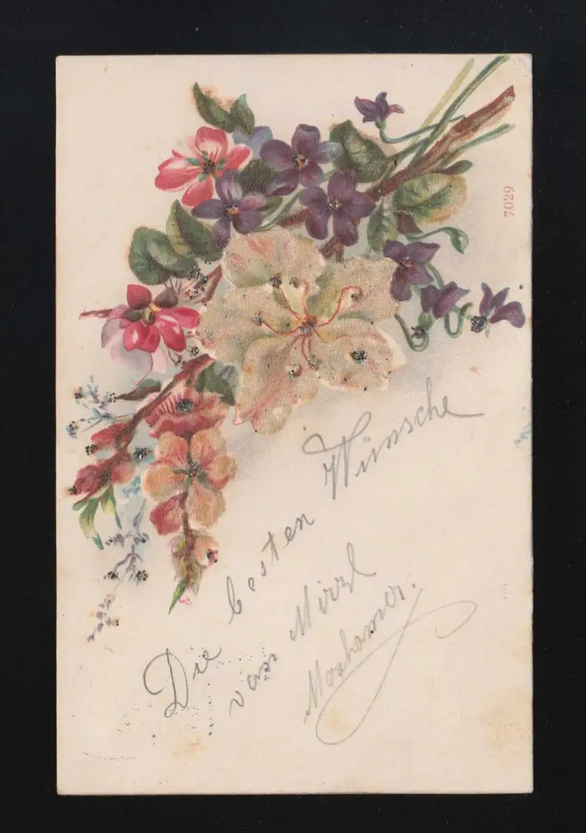 Bunter bouquet fleurs liées branches pierres brillantes, Passau 26.7.1900