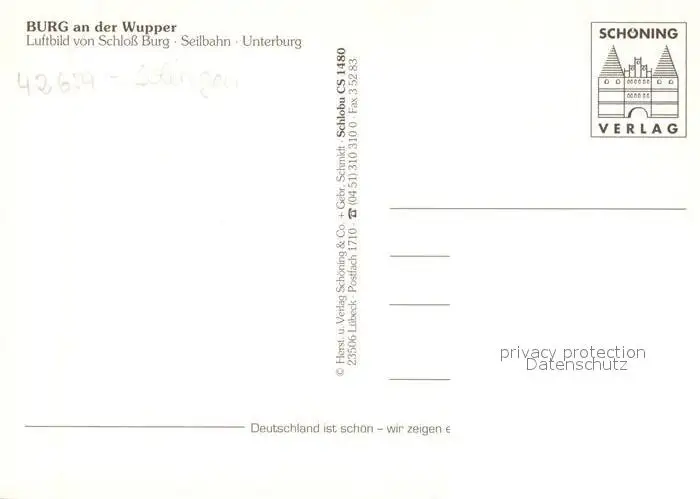 Burg_Wupper Schloss Burg Seilbahn Unterburg Fliegeraufnahme Burg Wupper postalisch nicht gelaufen nach 1965 Erhaltung siehe scans [WerneD78] WernPID7