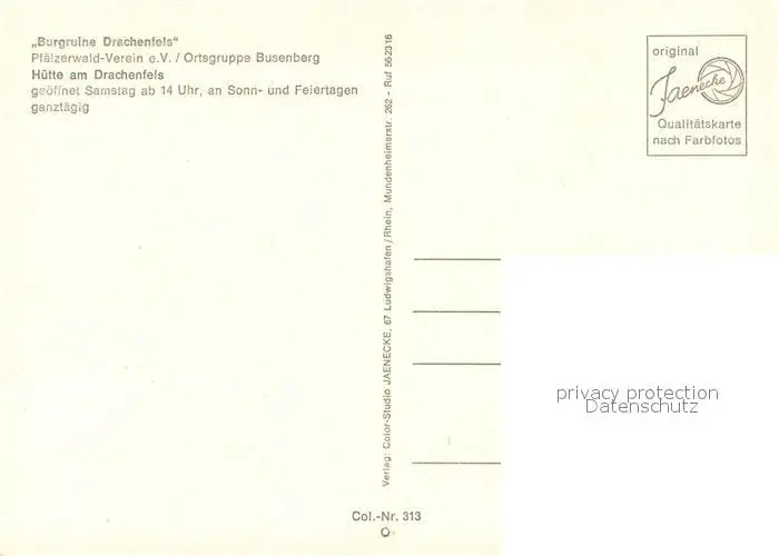 Busenberg_Pfalz Huette am Drachenfels Torbogen Panorama Busenberg Pfalz postalisch nicht gelaufen nach 1965 Erhaltung siehe scans [WerneD78] WernPID7