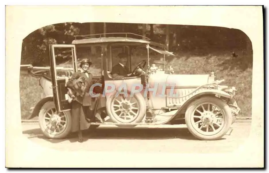 CARTE PHOTO Automobile Femme Chien