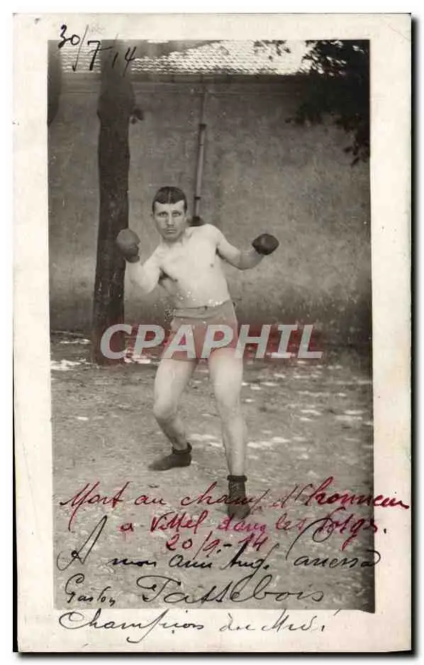 CARTE PHOTO Boxe Gaston Fassebois Champion du Midi
