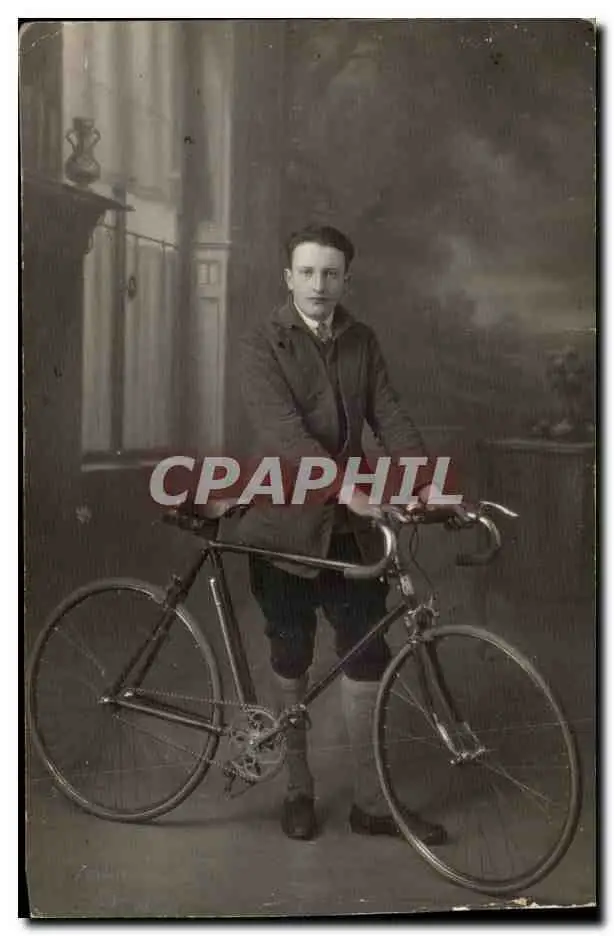 CARTE PHOTO Jeune homme et velo (cycle cycliste)