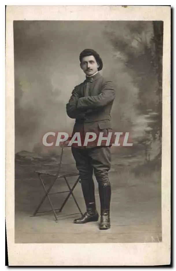 CARTE PHOTO Militaria Chasseurs Alpins (n�3 sur le col)
