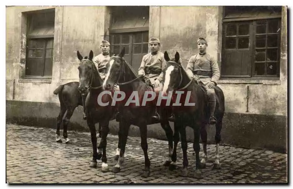 CARTE PHOTO Militaria Soldats Chevaux Cavaliers