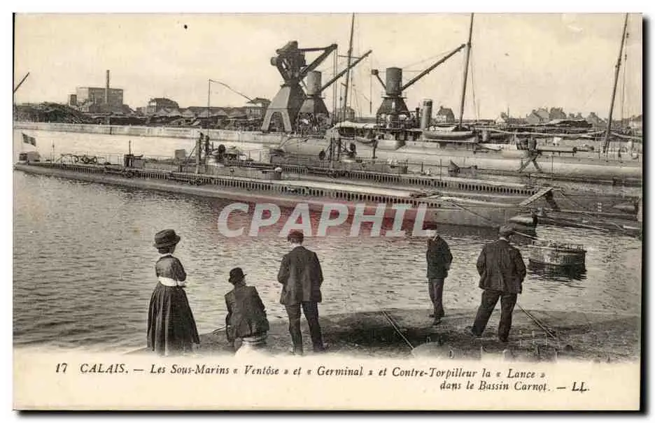 Calais - Les Sous Marins - Ventose et Germinal et contre Torpilleur la Lance dans le Bassin Carnot C