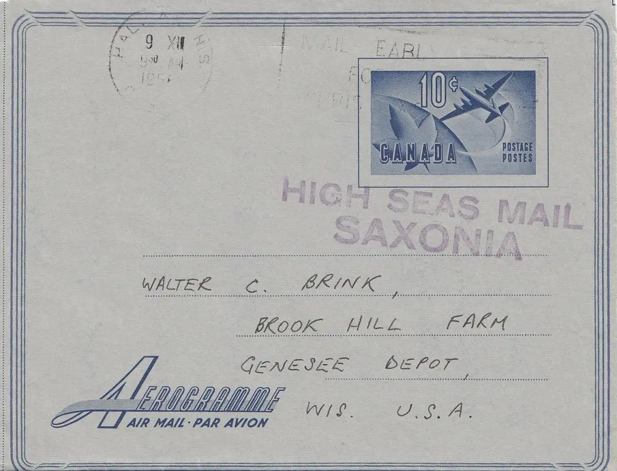 Canada: 1958: Atlantic Ocean near Halifax- High Seas Mail Saxonia - to Genesee