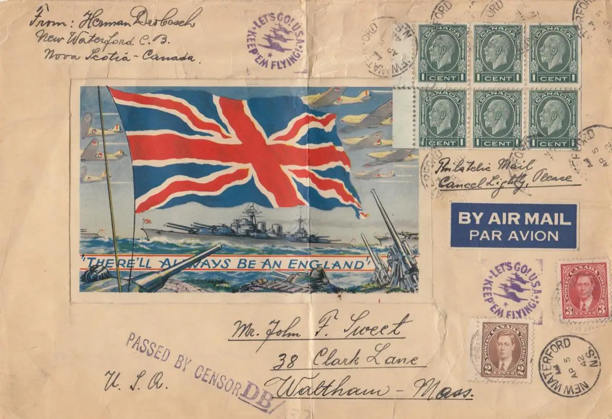 Canada: Air Mail 1942: était scène New Waterford to Waltham - Mass., centre