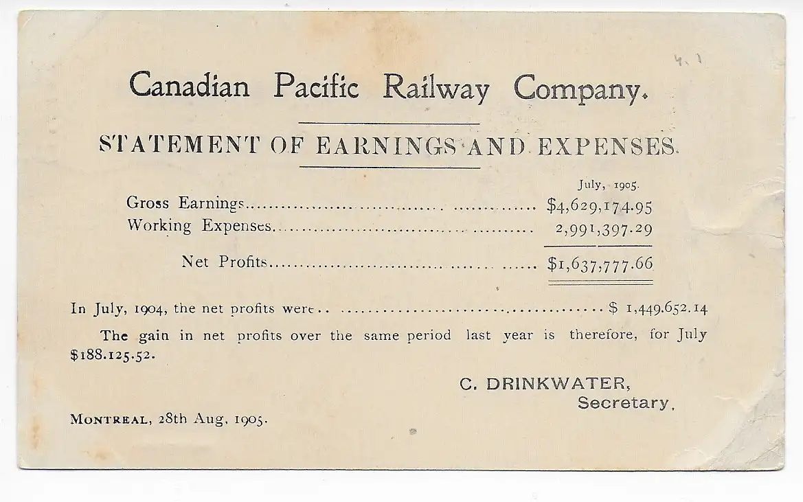 Canada: Lake Louise, Pacific Railway Hotel, Montréal, Earnings