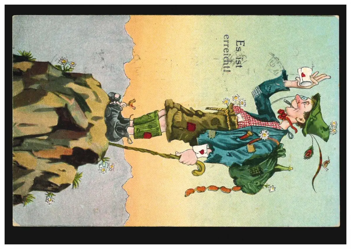 Caricature-AK Au sommet de la montagne: Il est atteint! transporté vers 1920