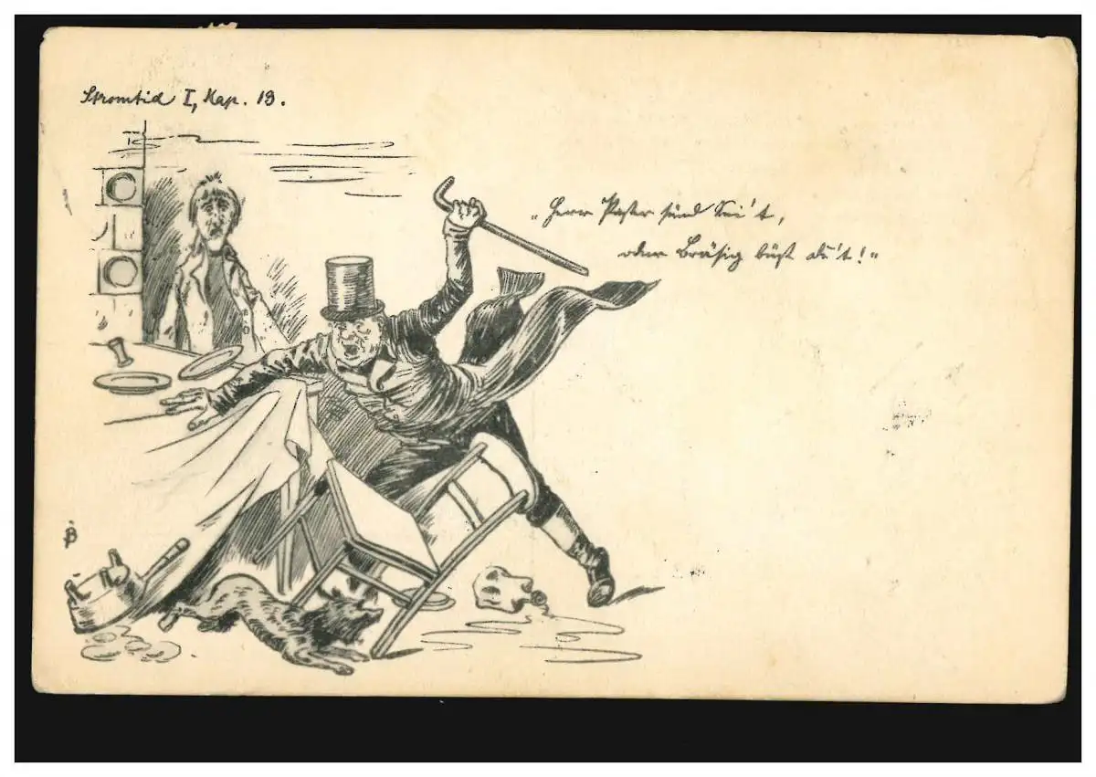 Caricature AK Dans l'auberge: Le chien amène des invités dans la détresse, FRANKFURT/M. 20.5.07
