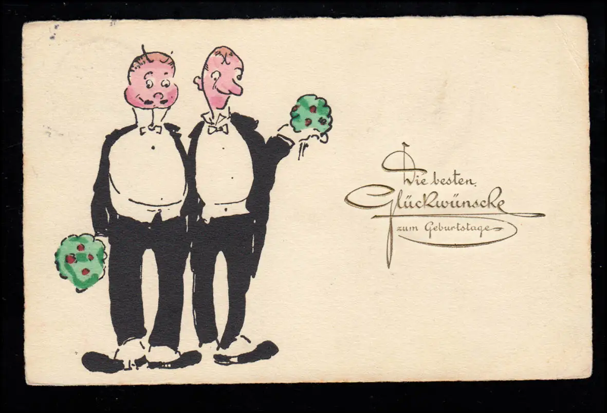 Caricature-AK Deux hommes ivres dans la fracasse avec des fleurs, SELB 5.3.1928