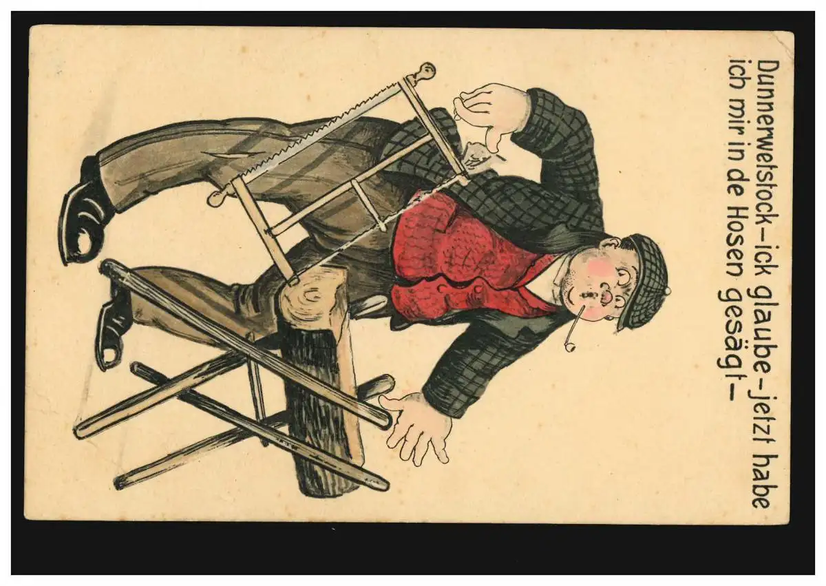 Caricature-AK Dunnerwetstock - je crois - maintenant je me suis scié dans mon pantalon