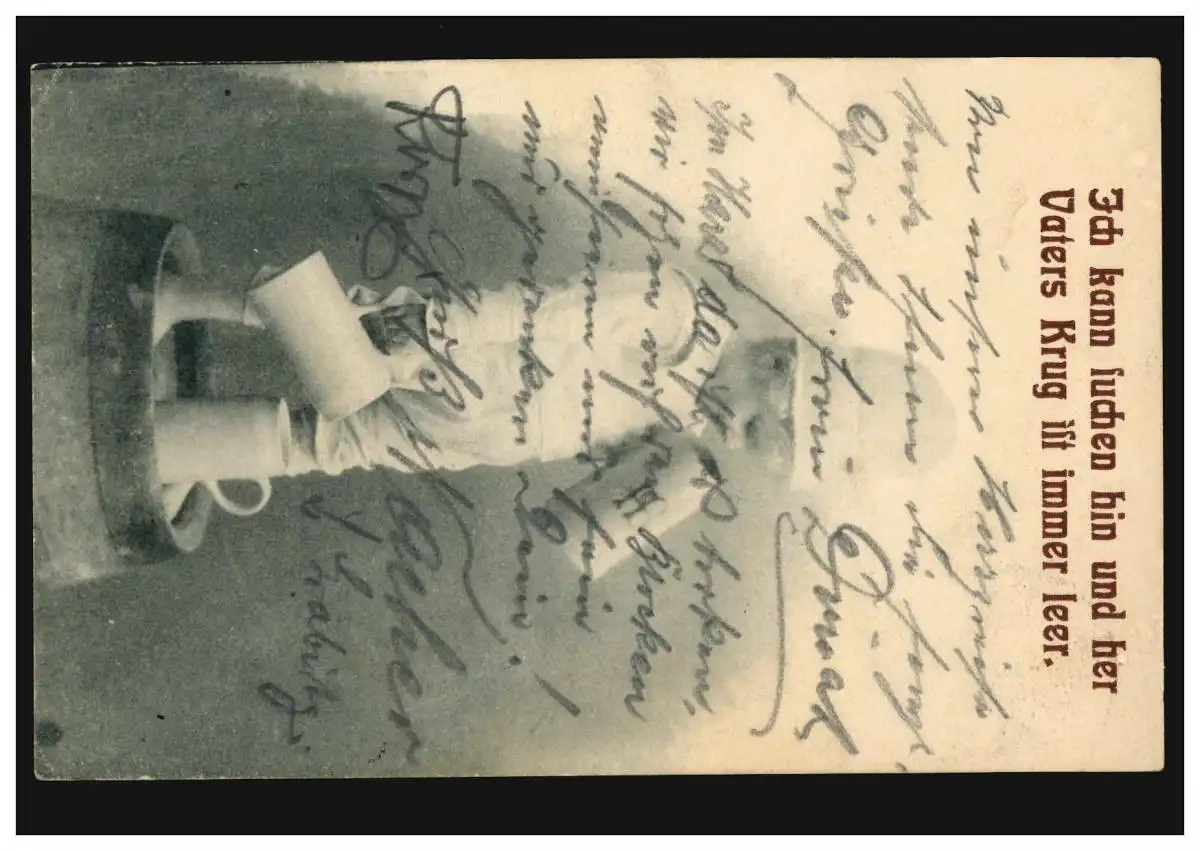 Caricature-AK Je peux chercher de l'avant et de la arrière la cruche de père est vide, 18.7.1913