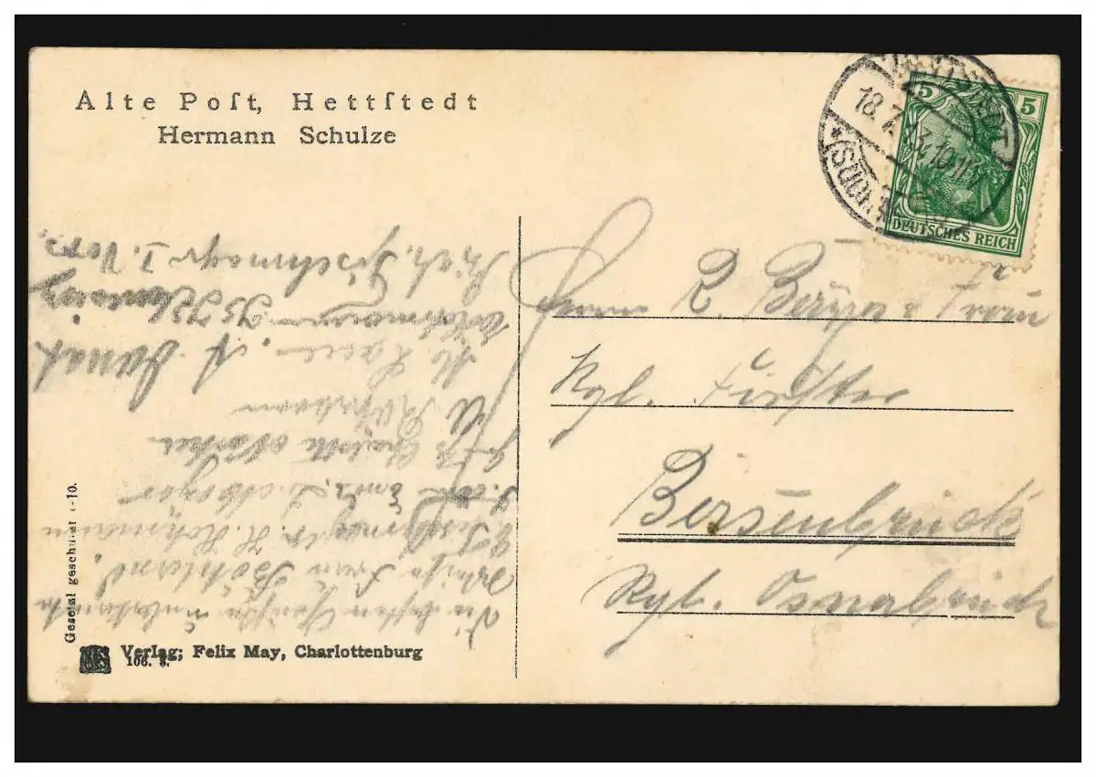 Alte Post Hettstedt Hermann Schulze / Verlag Felix May, Charlottenburg Examen: original Référence produit: 00000000037420