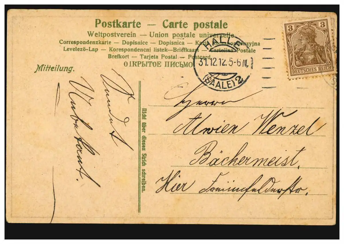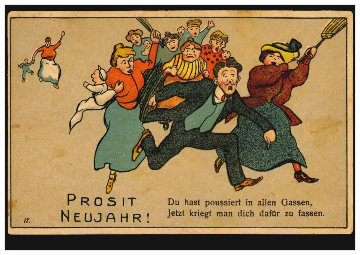 Caricature AK Le tricheur de mariage est chassé Prosit Nouvel An! HALLE/SAALE 1912