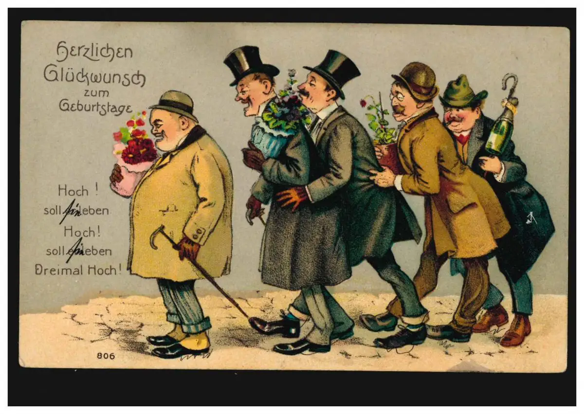 Caricature AK Les ivrognes apportent les vœux d'anniversaire, SCHWABACH 11.1.1912