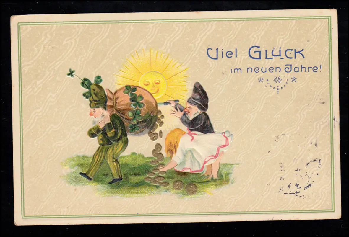 Caricature AK Maléfique nain avec un couteau: naine avec sac perd la chance, LÜBECK