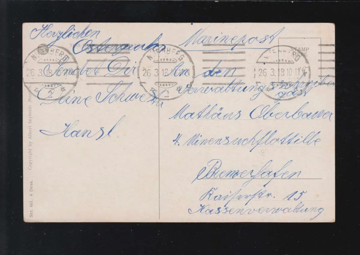 Caricature AK Mickey et Dicky l'ont déjà reçu Boben Marinepost, Nuremberg 26.3.1918
