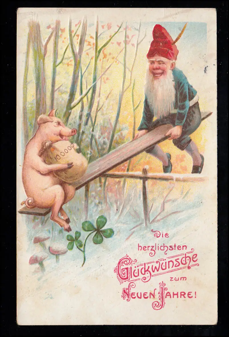 Caricature-AK Nouvel An: Sur le berceau avec porc et argent, LAUTERBACH 1907