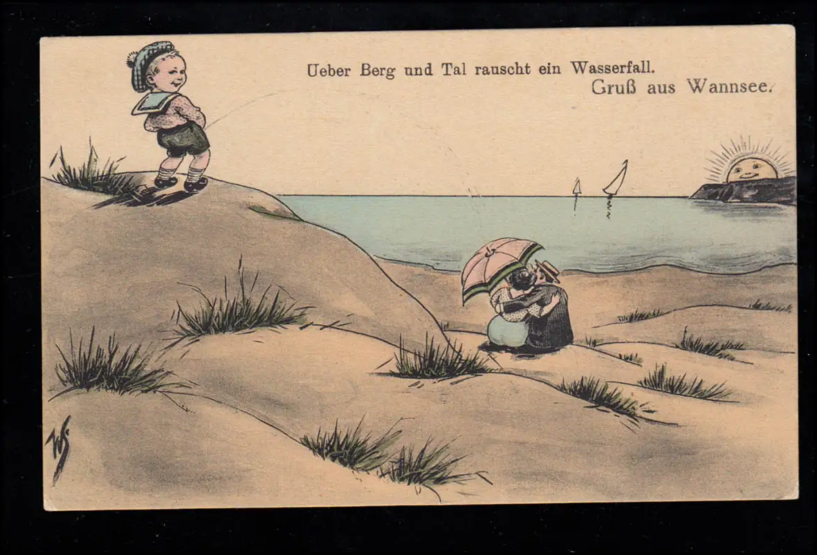Caricature-AK Salutation de baignoire - Le pique-nique dans les dunes, inutilisé