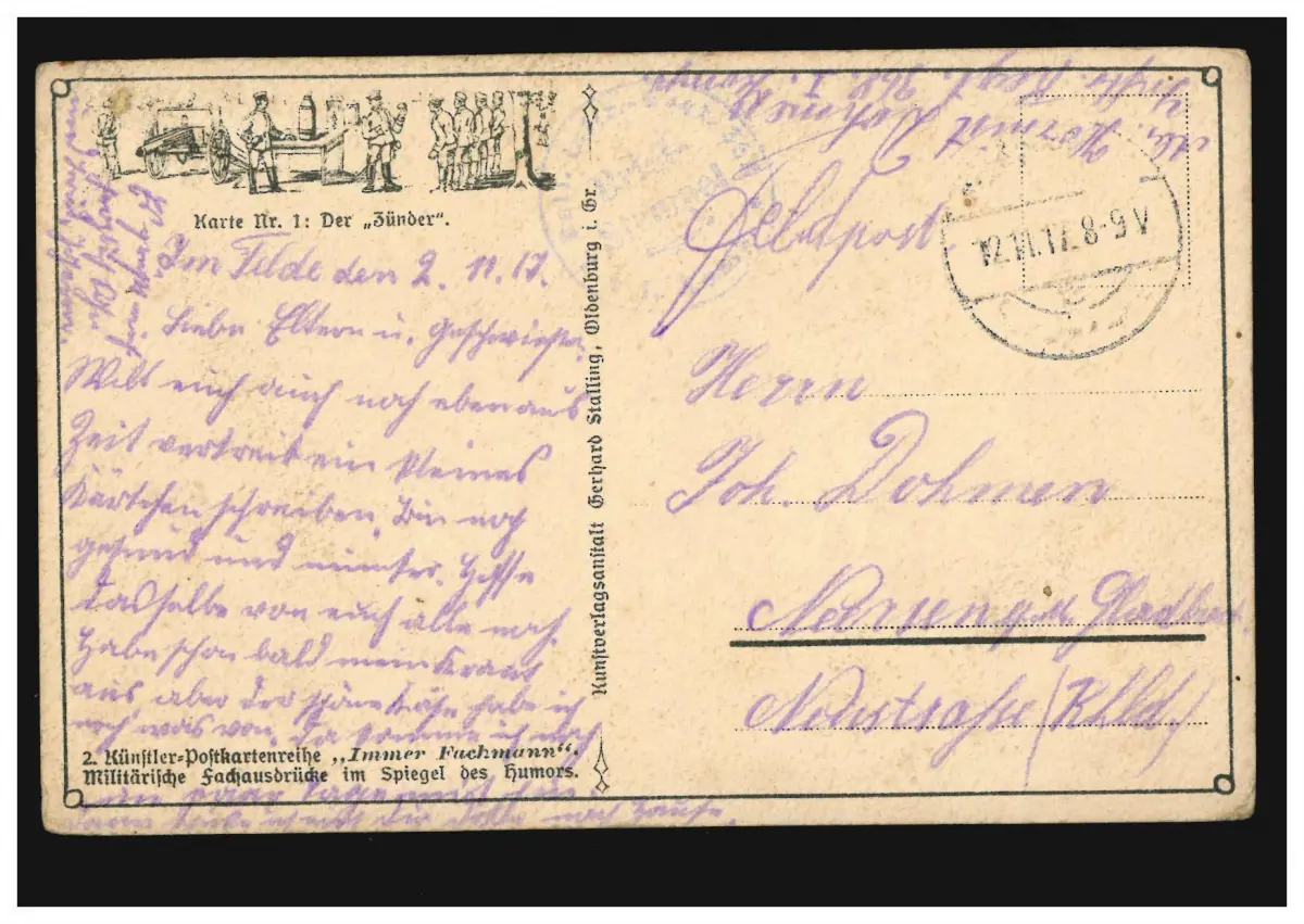 Caricature-AK Toujours Professionnel: Le Détonateur, Poste de Champ avec BS 12.11.1917