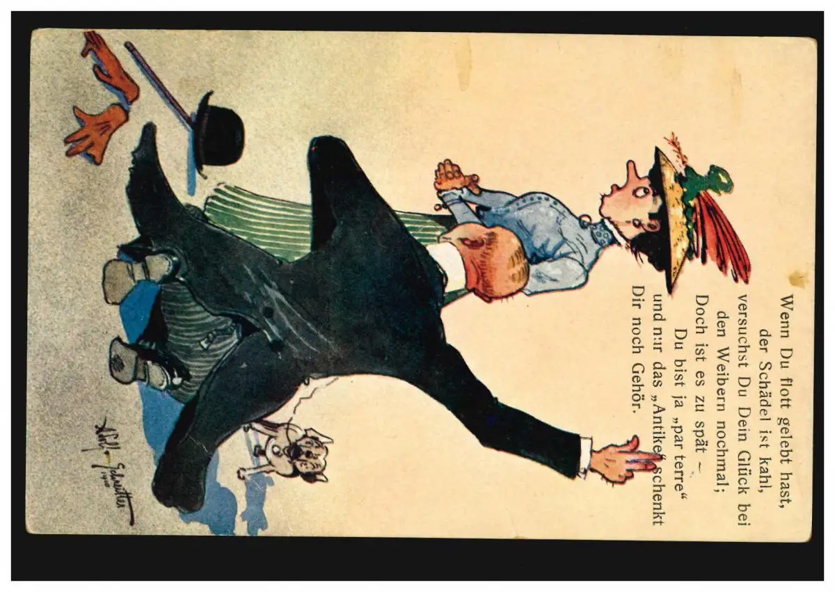 Caricature AK demande de mariage à l'âge avec un poème passed, marqué