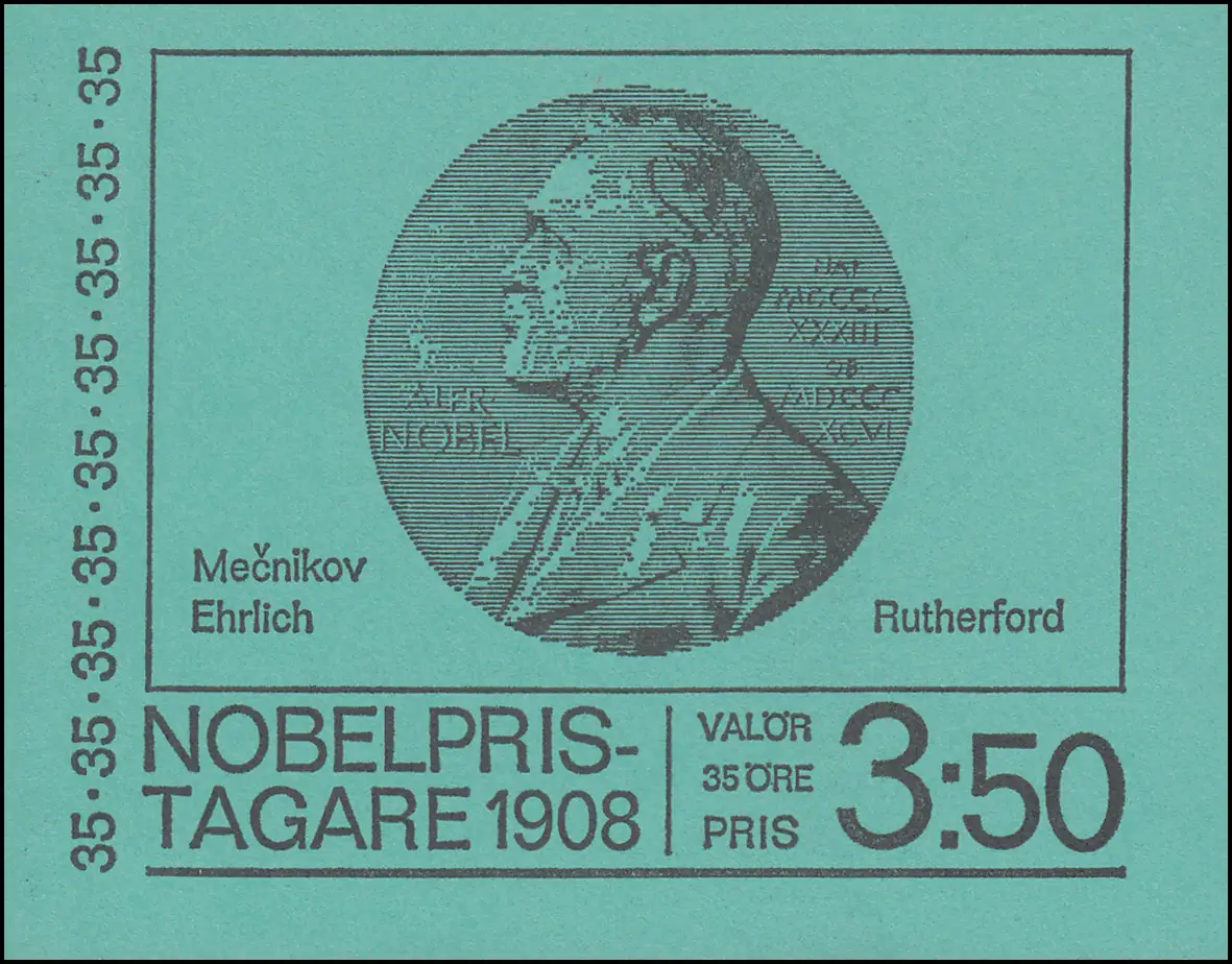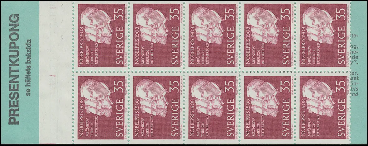 Carnet de la marque Prix Nobel 1908 35 Öre 10x 626D, **