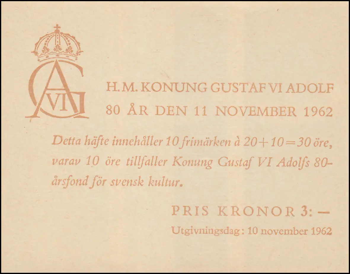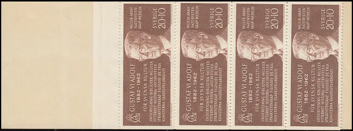 Carnet de la marque anniversaire roi Gustav VI Adolf 20 Öre 10x 498C, **