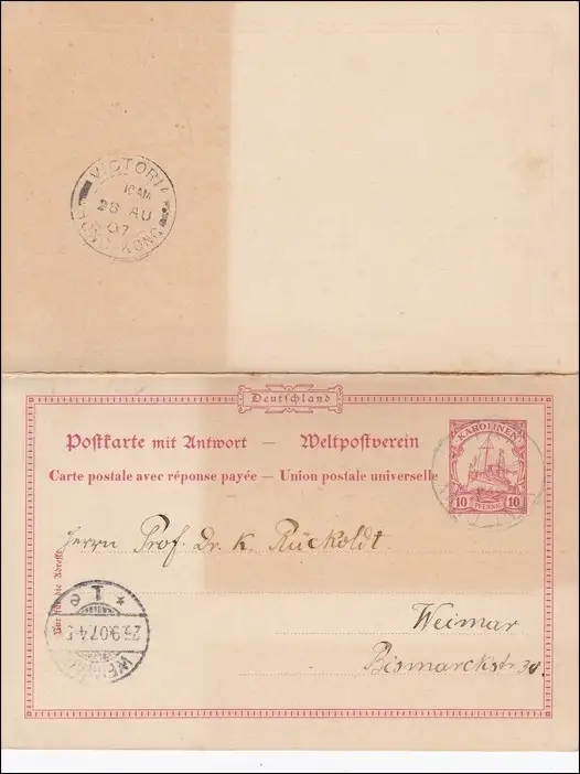 Carolines: Affaire complète P10F/A de Yap à Weimar 1907