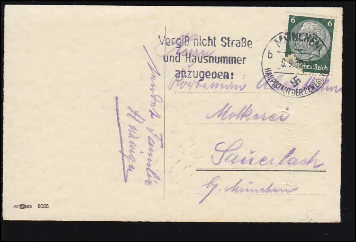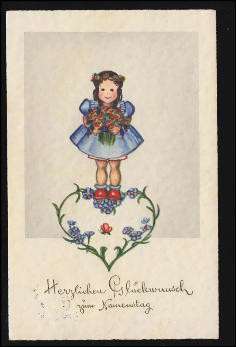 Carte Visual Nom de la fille avec des fleurs debout sur le cœur, MUNICH 9.9.1937