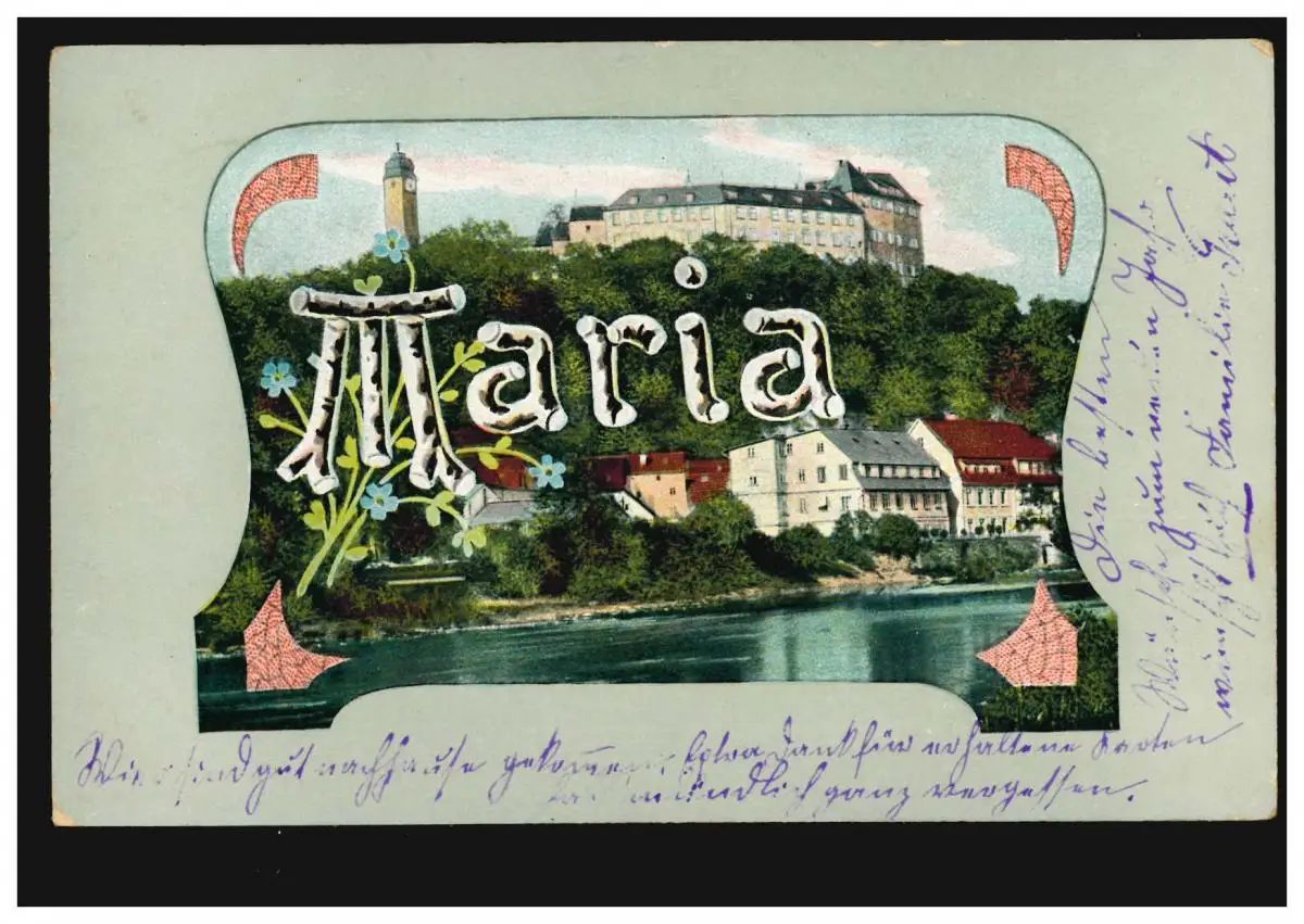 Carte Visual Prénoms: Maria, Paysage avec château et rivière, couru 1905