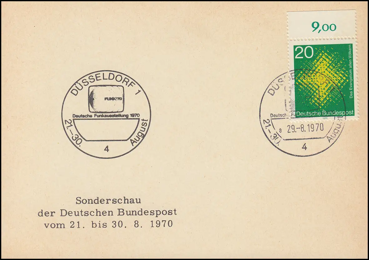 Carte Vue spéciale de la Deutsche Post Radioexposition SSt DÜSSELDORF 29.8.1970