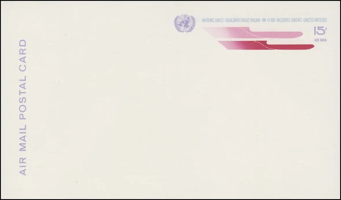 Carte aérienne LP 9 de l'ONU de New York, 15 centimes 1972, inutilisé **