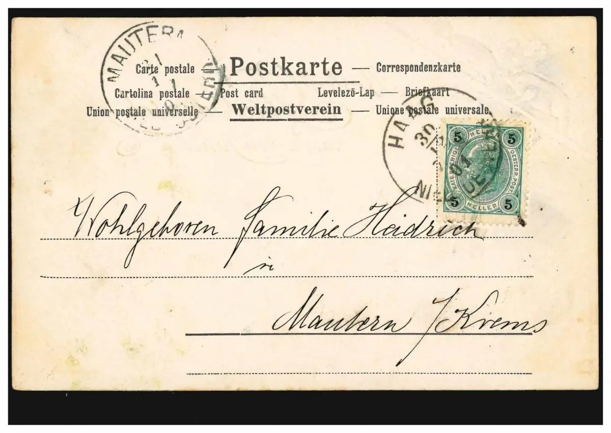 Carte avec revêtement d'argent Nouvel An Crème chanceuse, HAAG NIEDERÖST AUTRICHE 1901