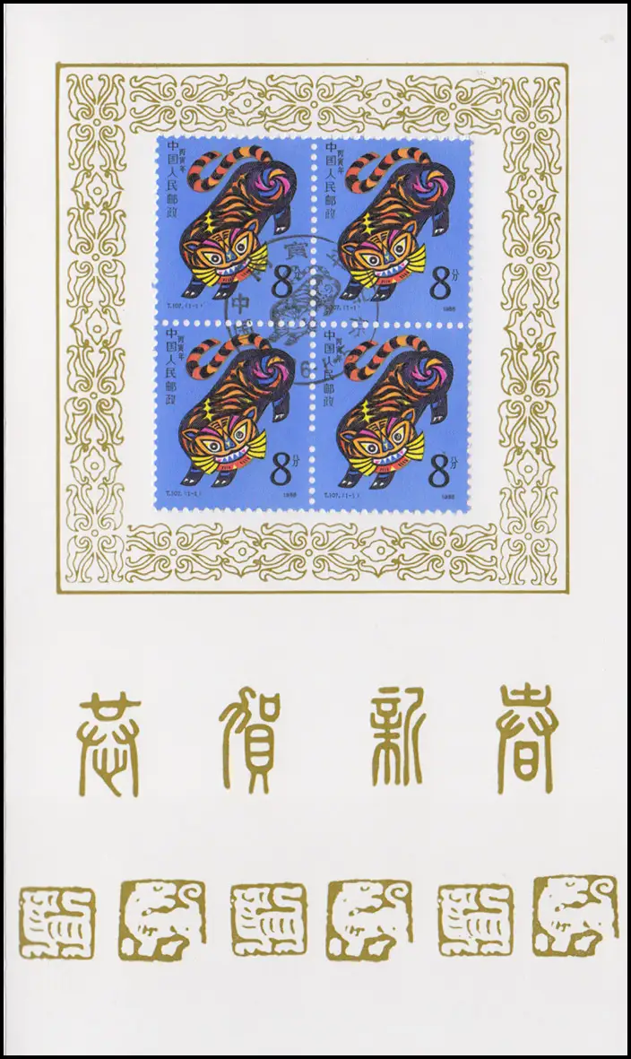 Carte commémorative Chine 2045A Année du tigre 1986, ESSt 5.1.86