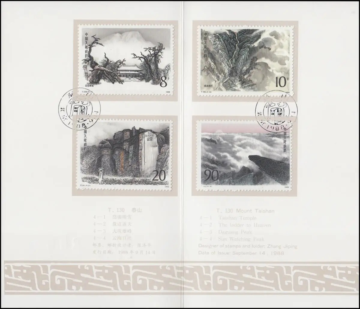 Carte commémorative Chine 2194-2197 Les cinq Montagnes Saintes de Chine: Taishan 1988 ESSt