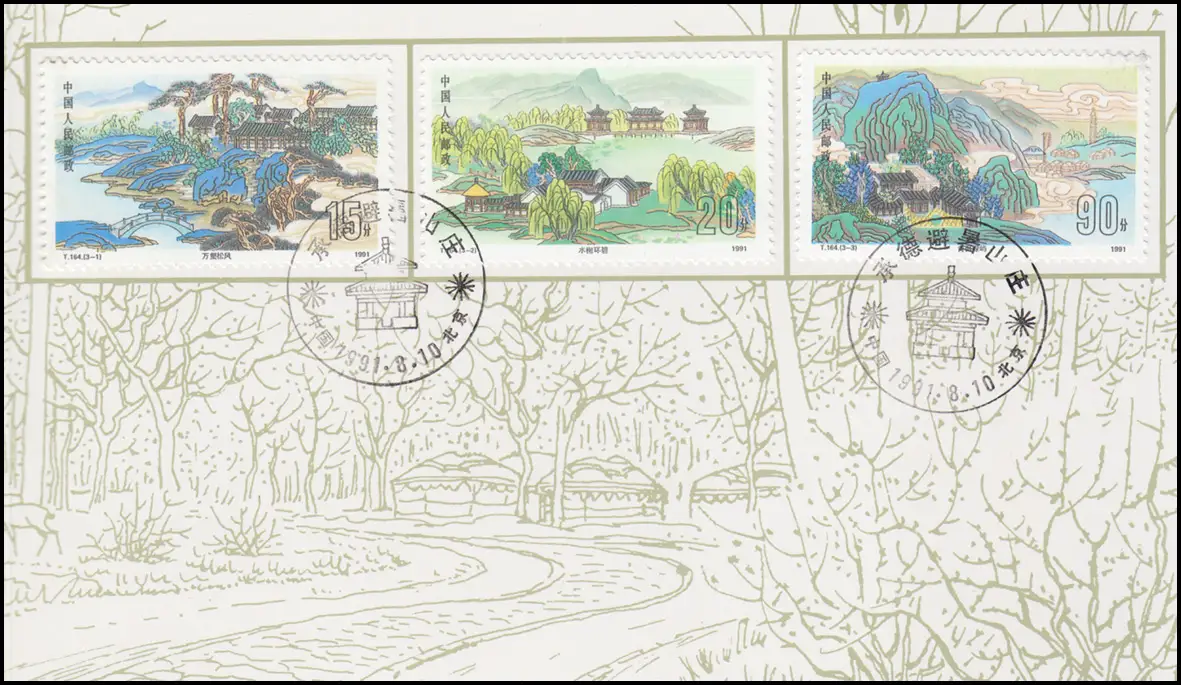 Carte commémorative Chine 2381-2383 Jardins à Chengde 1991, ESSt 10.8.91