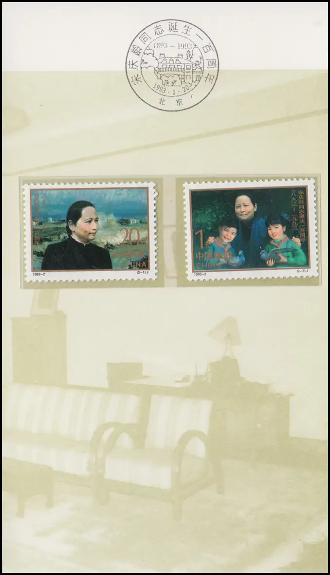 Carte commémorative Chine 2465-2466 anniversaire de Song Qingling 1993, phrase **