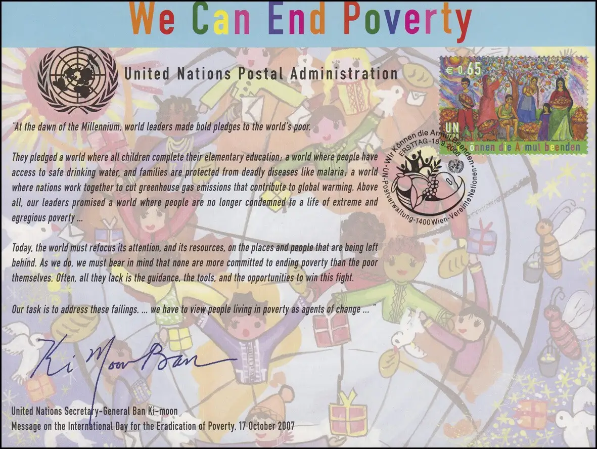 Carte commémorative de l'ONU CE 63 Elimination de la pauvreté 2008, Vienne-FDC 18.9