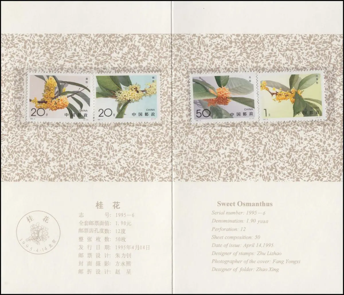 Carte commémorative de la Chine 2600-2603 inflorescences de fleurs de parfum 1995, phrase **