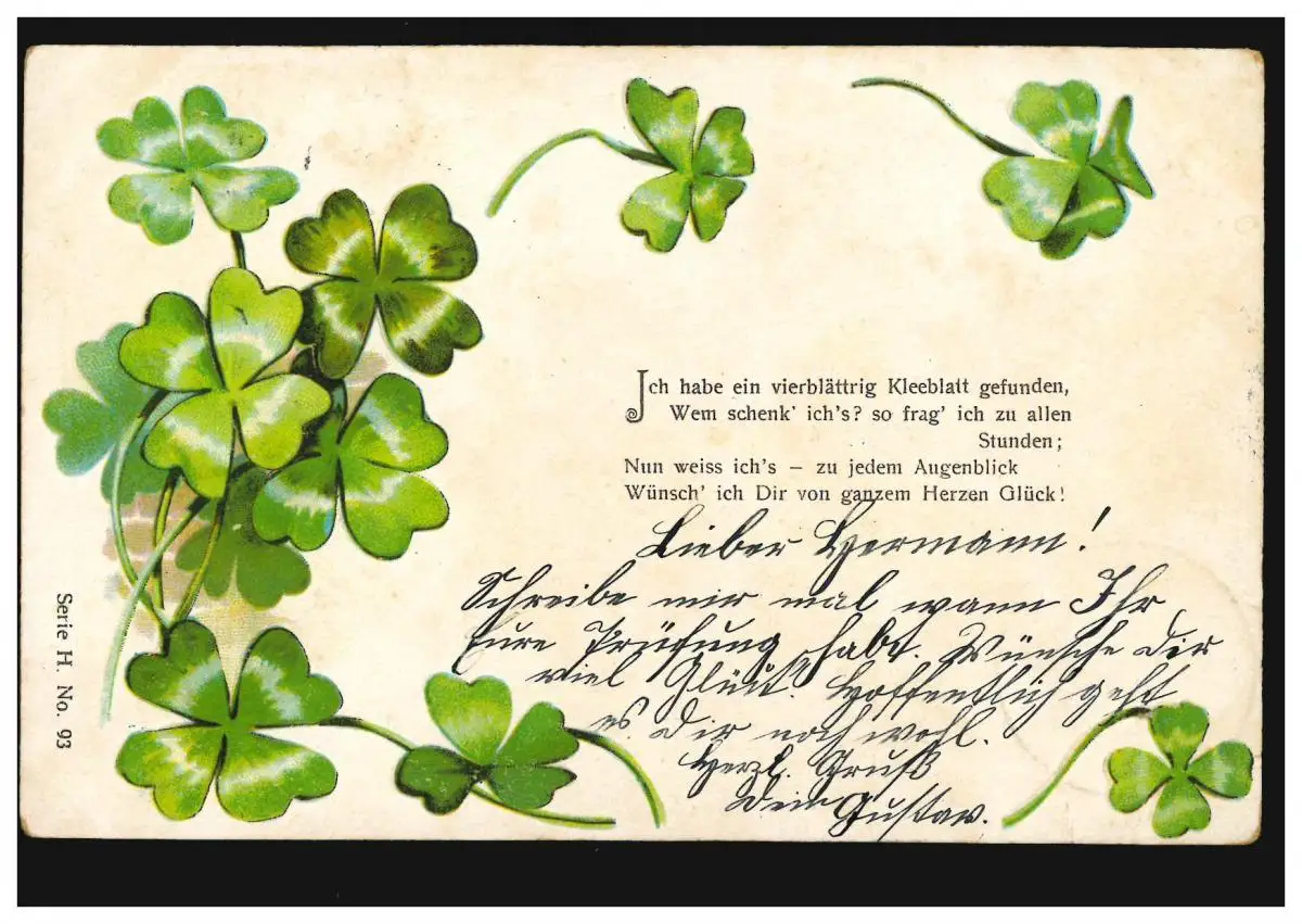 Carte d'anniversaire d ' anniversaire Poème Trèfle à quatre feuilles, TÉLÉCHARGEMENT 14.2.1904