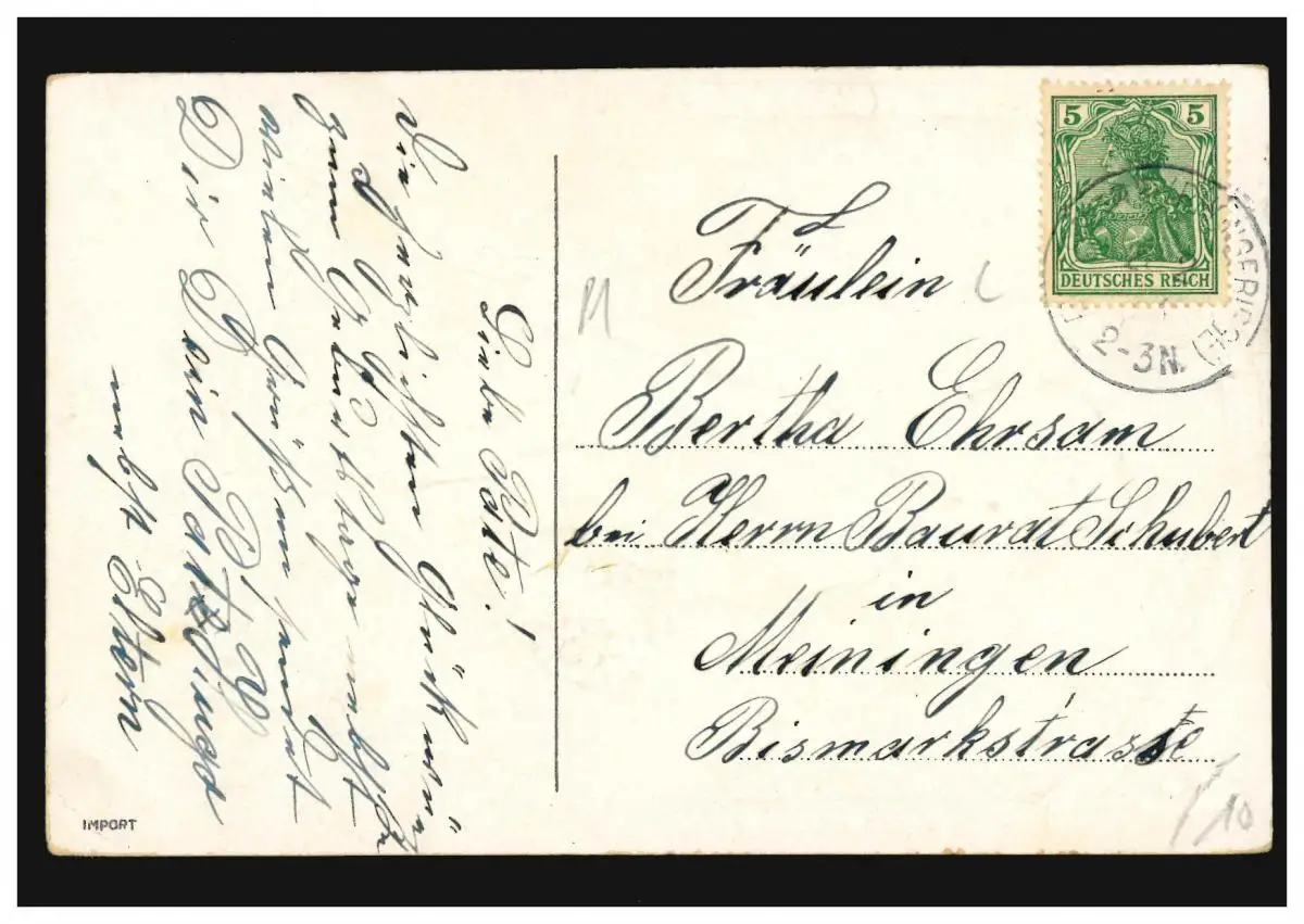 Carte d'anniversaire de fille avec bonnet et bouquet de fleurs, couru vers 1910