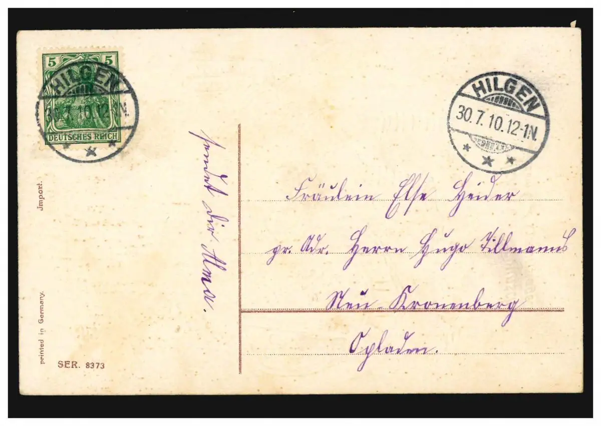 Carte d'anniversaire de fille et garçon avec paniers de fleurs, HILGEN 30.7.1910
