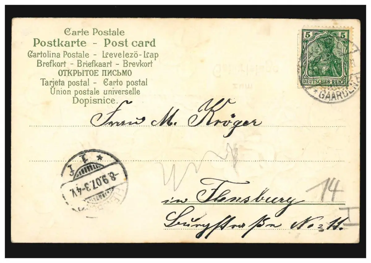 Carte d'anniversaire de la chance de girlande, KIEL-GAARDEN 7.9.1907
