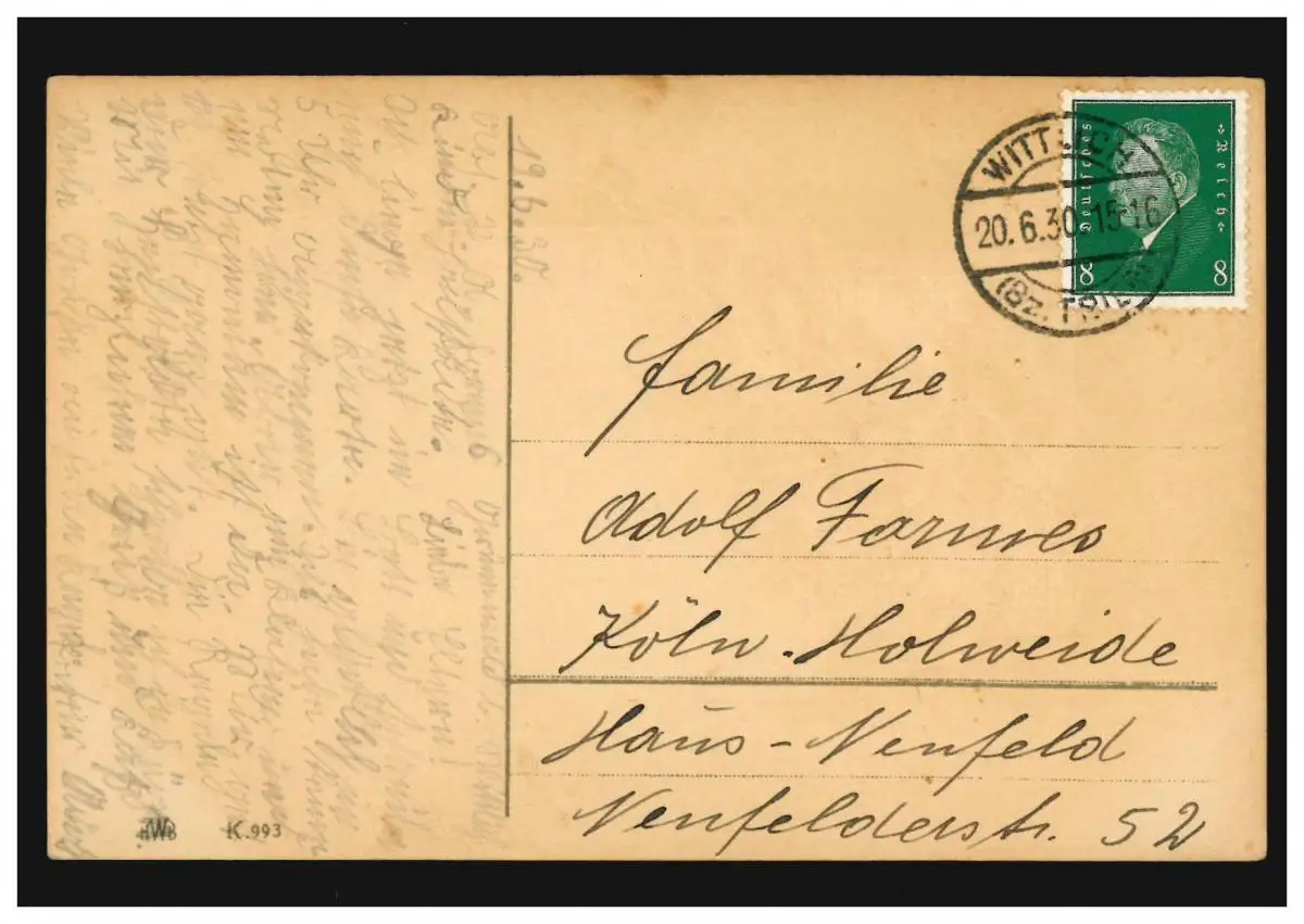 Carte d'anniversaire du bouquet de violette, WITTLICH (BZ. TRIER) 20.6.1930
