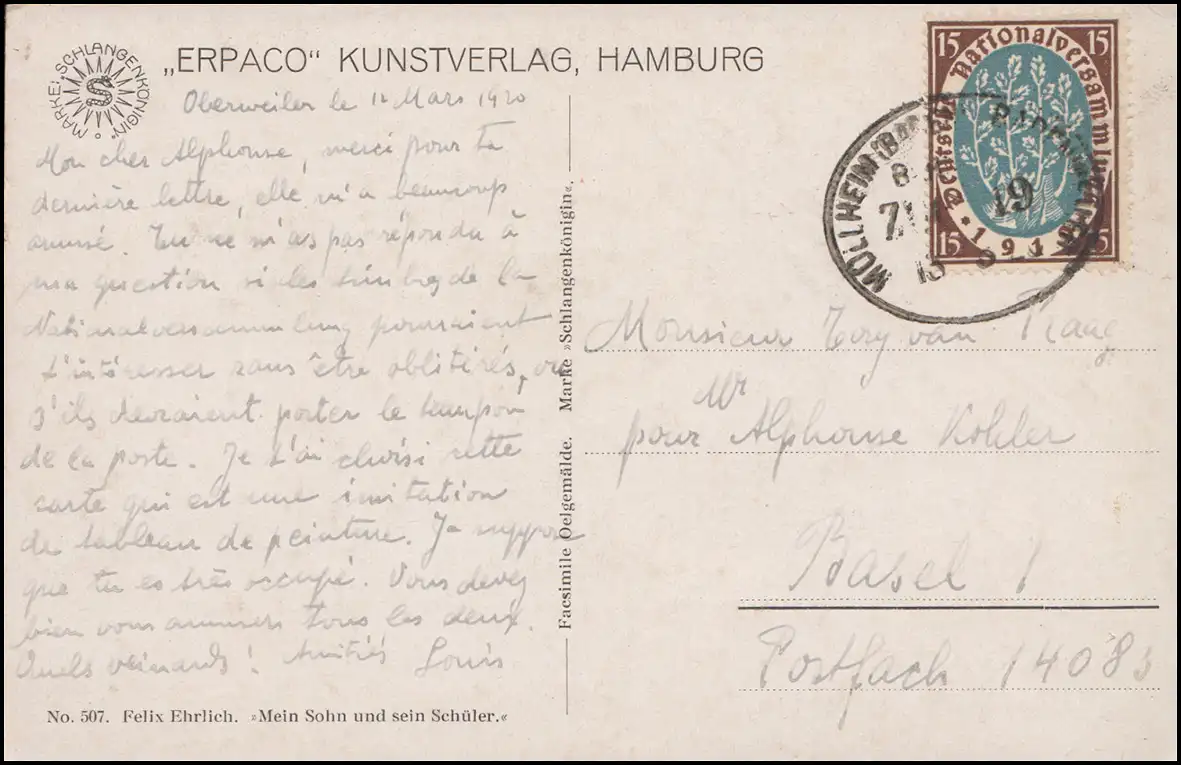 ERPACO-Kuntsverlag Hamburg / Felix Ehrlich: Mon fils et son élève Numéro de catalogue: 108 Examen: original Référence produit: 00000000030636
