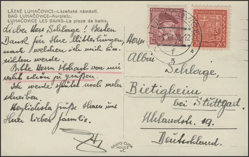 Carte de Bad Luhacovice: Kurplatz, Luhocovecie/Tchécoslovaquie 4.7.38