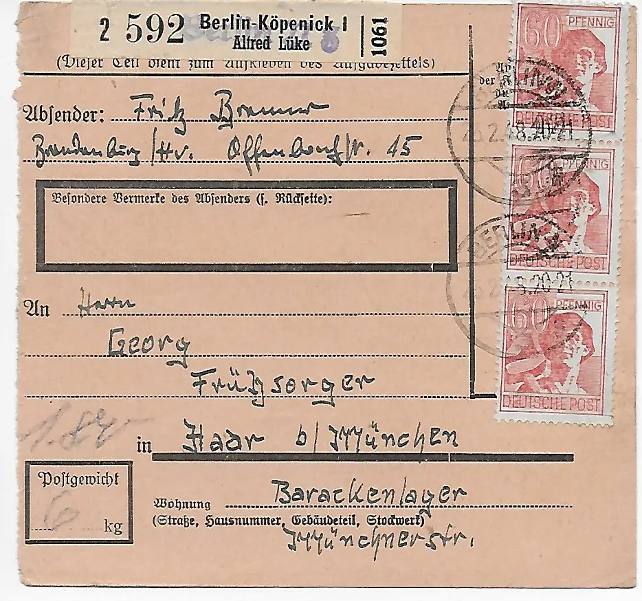 Carte de Berlin-Köpenick, Auto-livrer après Haar, 1948, MeF MiNr. 956