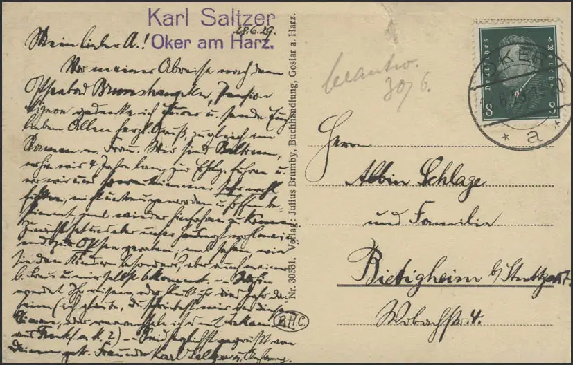 Carte de Goslar: La Ville Millénaire, Oker/Harz 28.6.29